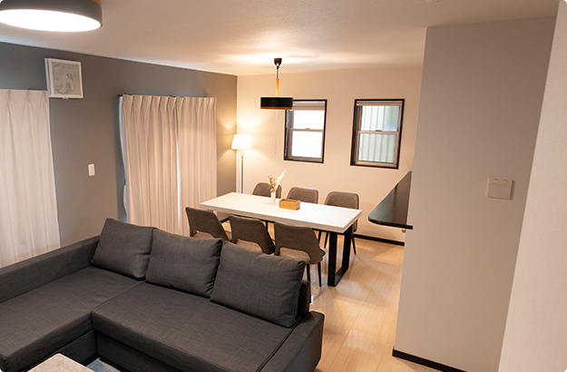京都駅徒歩3分の好立地にある一棟貸しの宿。最大5名宿泊可で基本設備が整っています。周辺にはローカルグルメ店やショッピングモールが揃い、長期滞在にも便利な環境です。